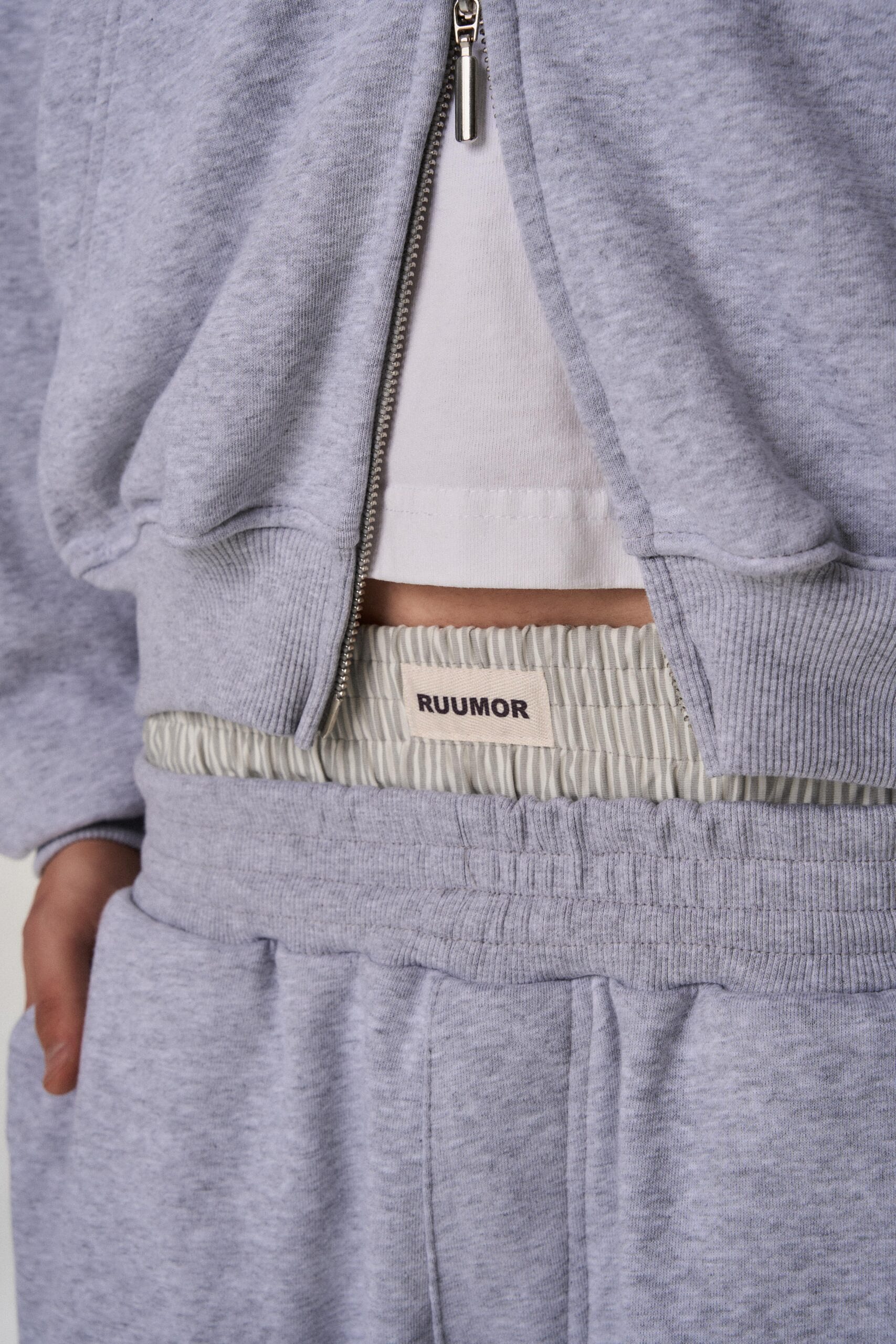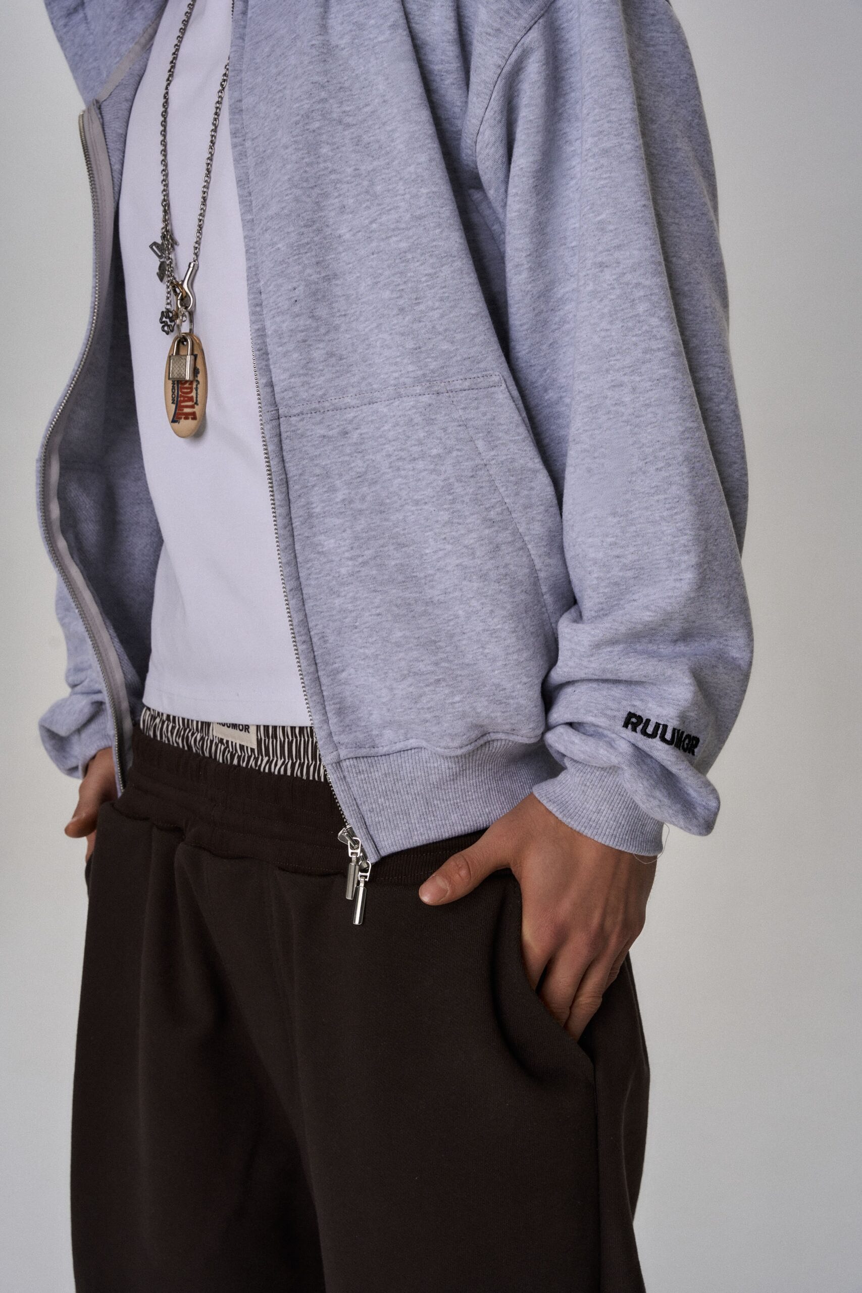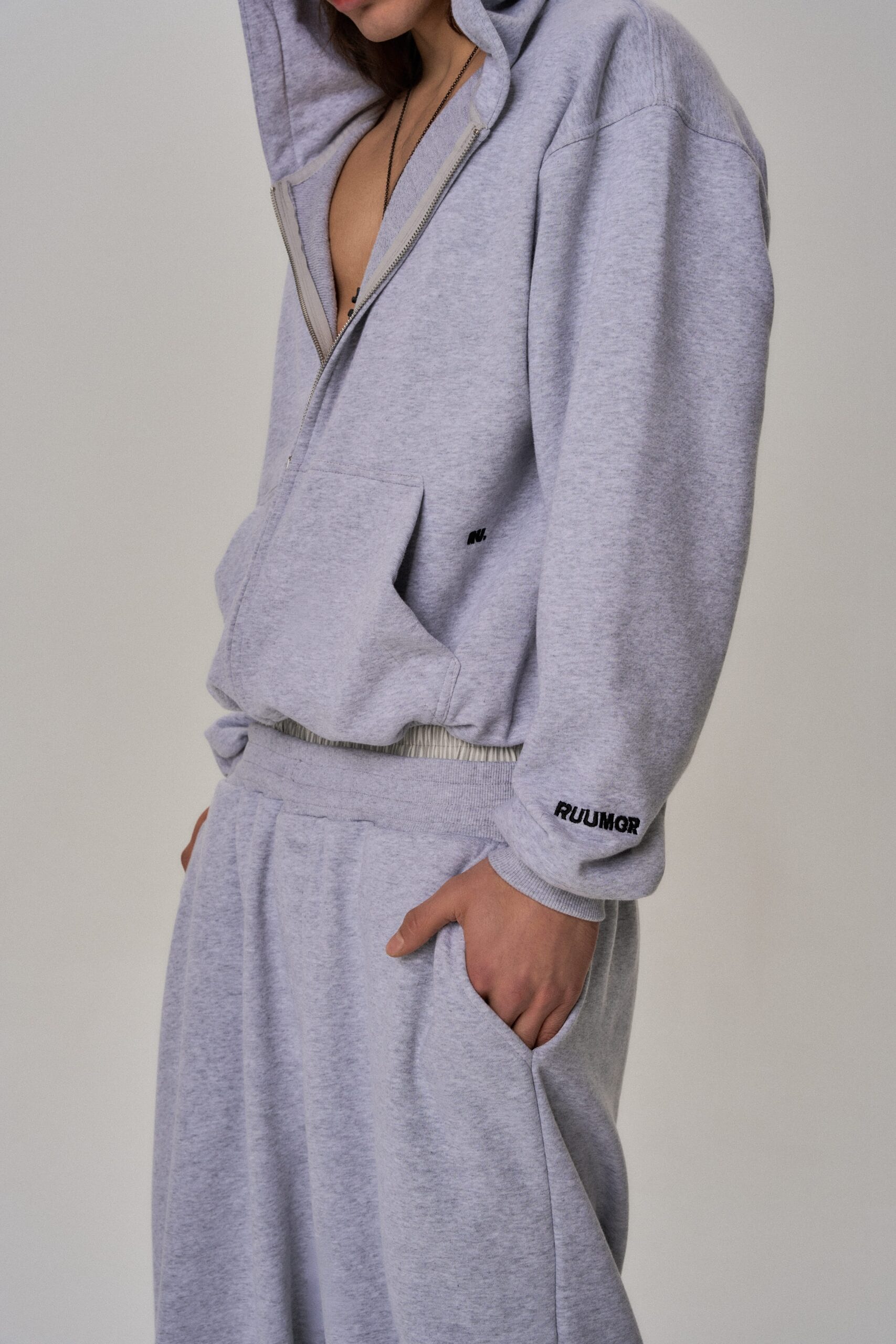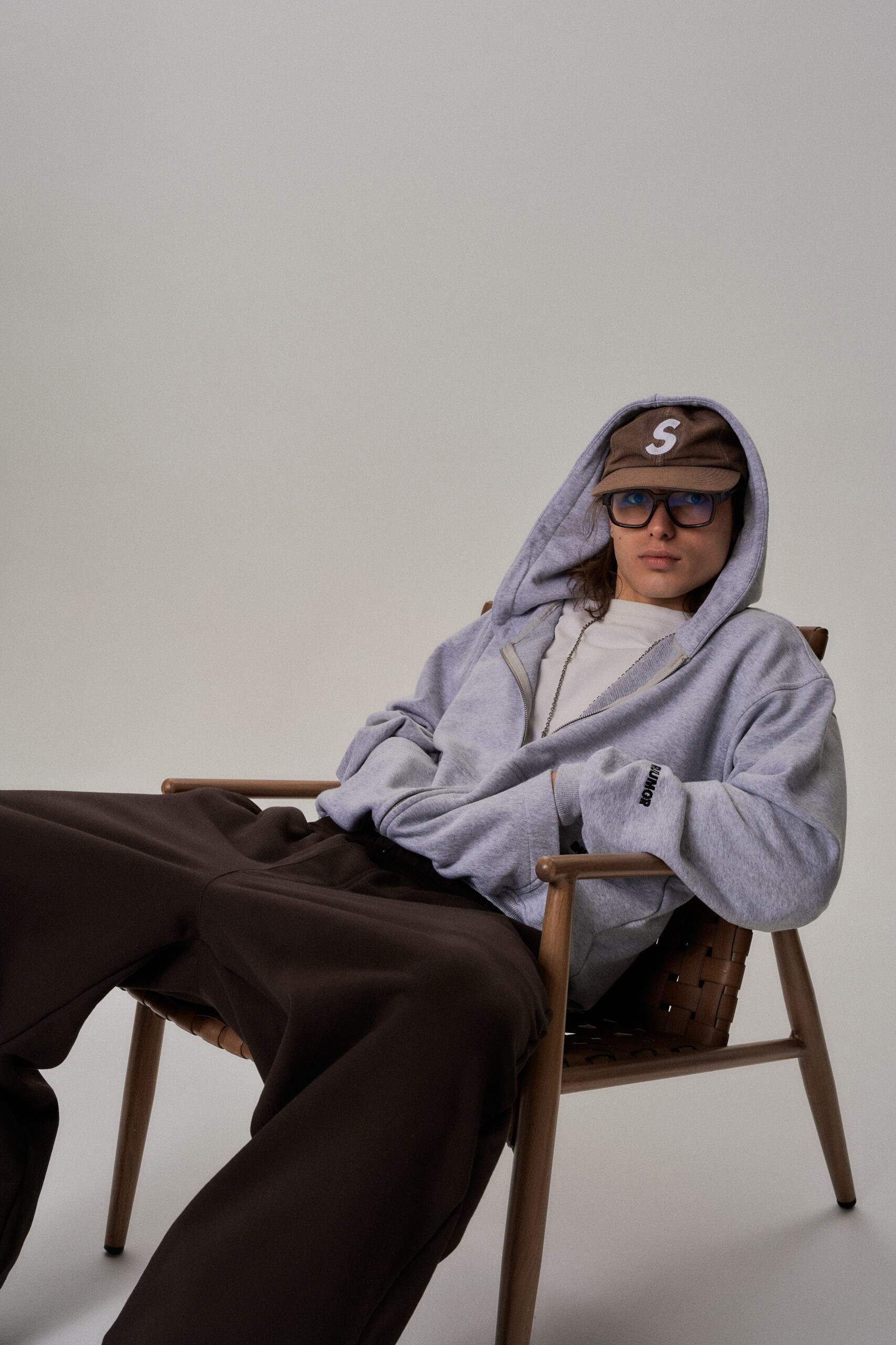 Bluza Zip z obszernym kapturem zapinana na podwójny, metalowy zamek, wykonana z wysokogatunkowej, miękkiej dzianiny pętelkowej.